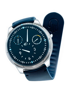This imposing 46mm-diameter titanium model is destined to be a trusted companion for divers. Adorned in a deep shade of blue, it ensures crystal-clear underwater readability from any angle and avoids any glinting. The hours, minutes and seconds feature an avant-garde design punctuating time with a display bathed in oil. The functions on this crown-free model are adjusted by rotating the caseback in either direction.
