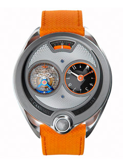Intended for a new generation of collectors, this model takes its styling inspiration from the bold colour combination of legendary British Racing automotive liveries. Developed in partnership with VMF, the Gorilla 5238 calibre is a contemporary reinterpretation of a 17th century horological mechanism. It is housed in a uniquely sculpted blend of high-performance materials, purposefully assembled in a sequence and designed to augment the user experience.